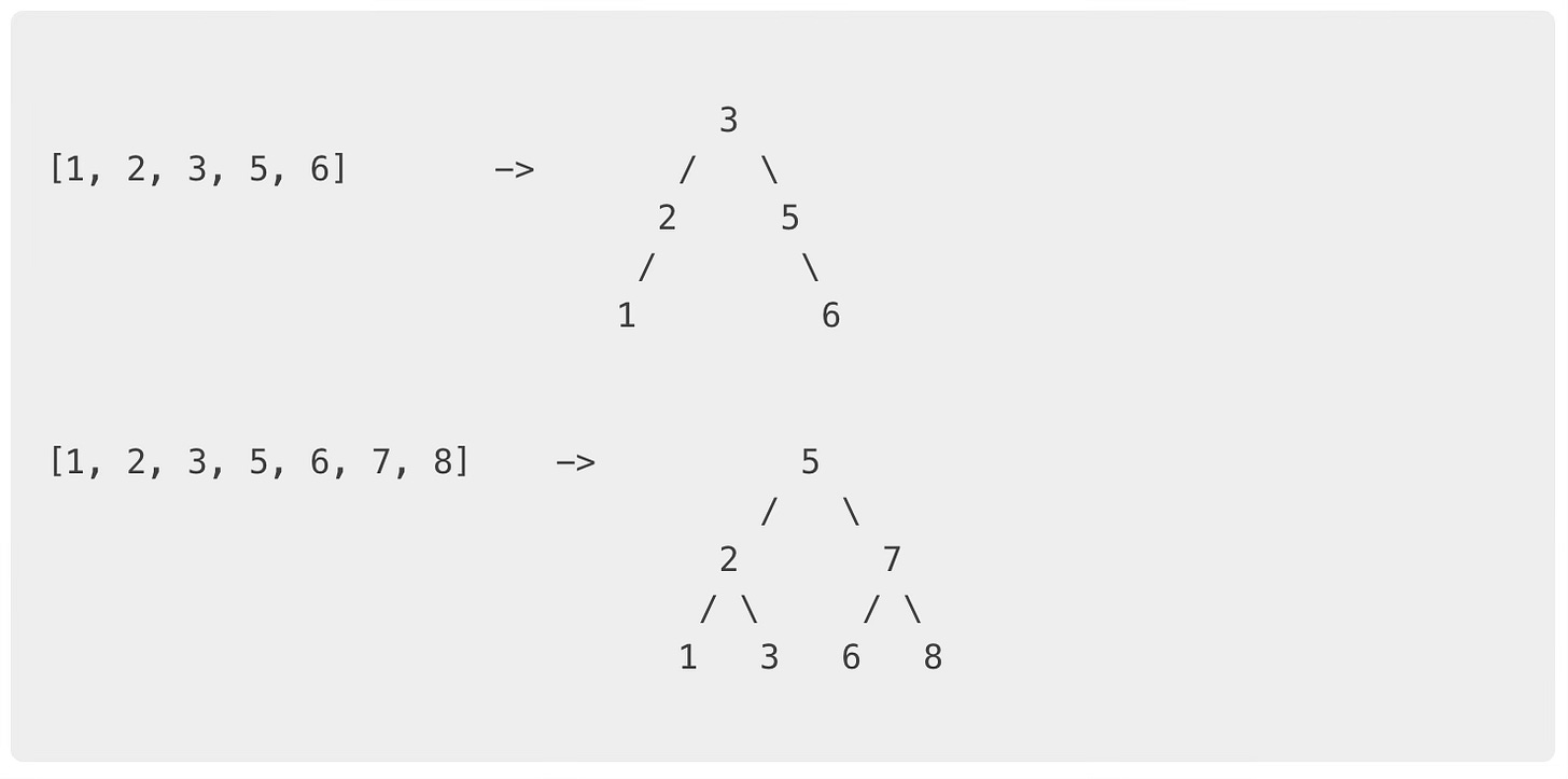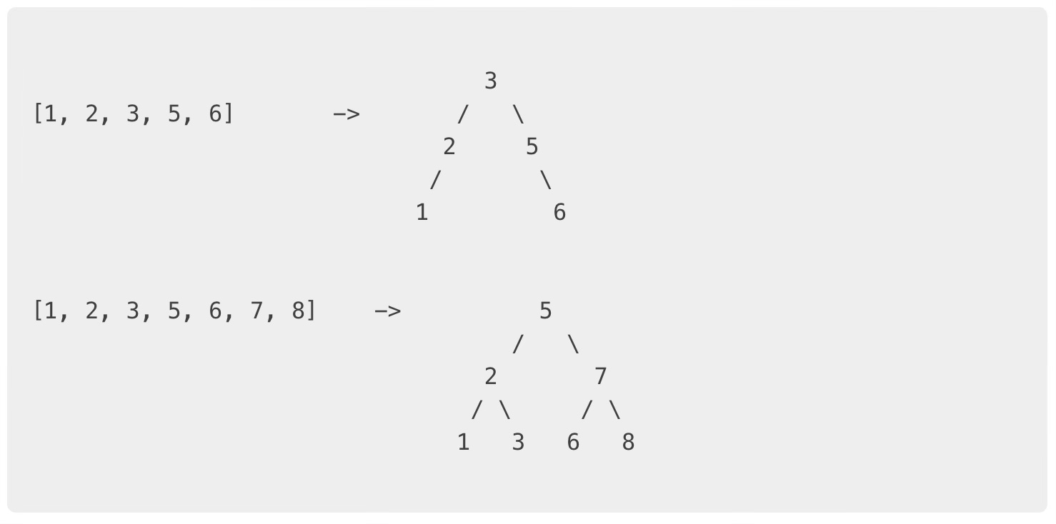 tree.root = addFromSortedArray(elements, 0, len(elements)-1)